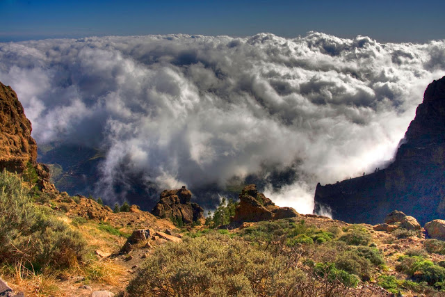 This is called: "Mar de Nubes" or "Sea of Clouds", loosely translated. Clouds with plenty of water stay over 500 m and under 1500 m over the sea level, and if you go over that height, then you can see our higher mountains emerging like islands among a sea of clouds, hence the name.